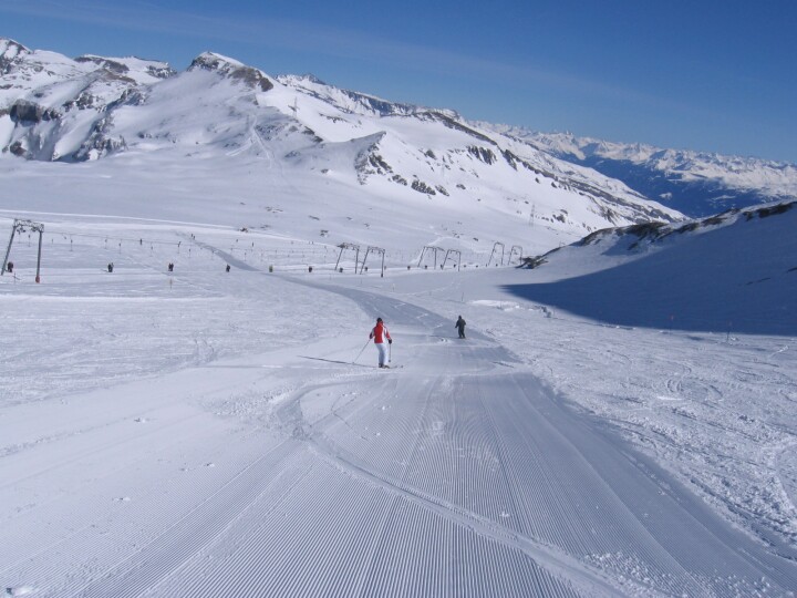 Blaue Abfahrt 32 (Beni), Kreuzung mit den Gletscherliften, Früher ging die Abfahrt mal auf dieser Seite weiter, heute ist das unmöglich