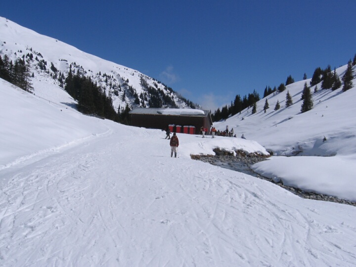 Schwarze Sattelabfahrt (35), Blick zur Talstation der DSB Alp Ruschein