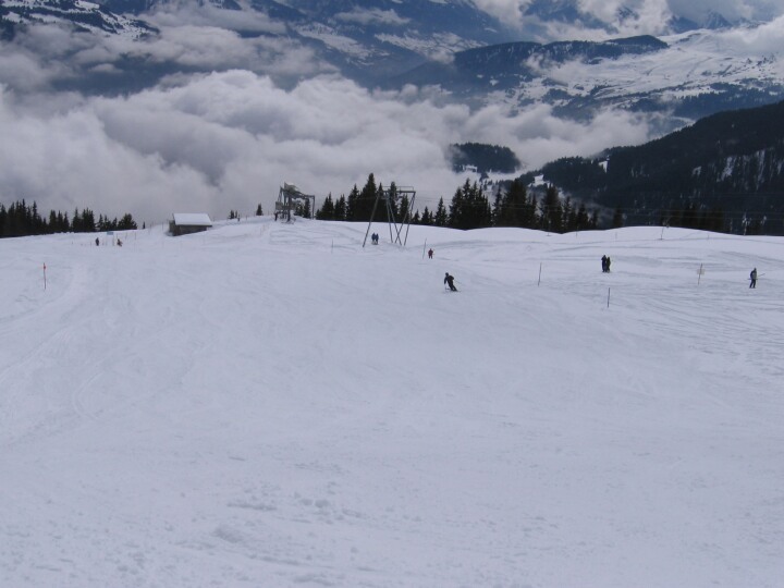 Blaue Abfahrt 52 (Alp Dado), Blick zur Talstation des 2-SL Alp Dado